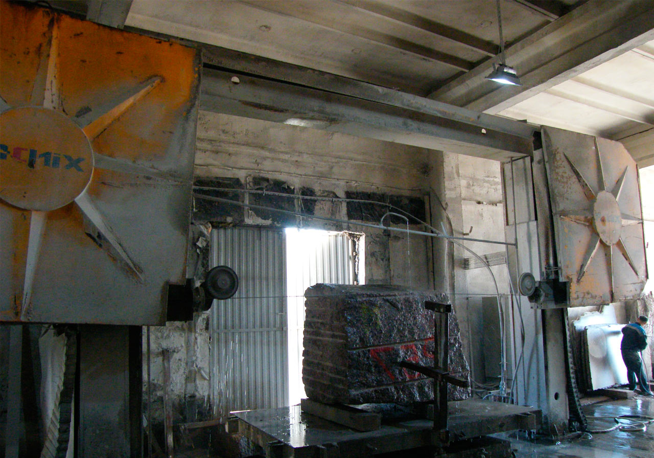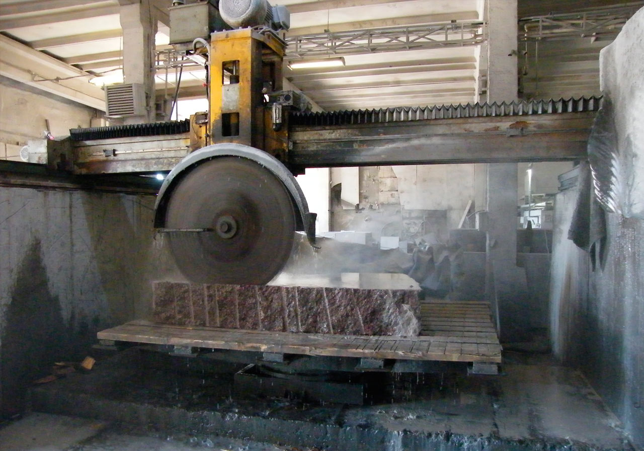 Мы оснастили производство передовым алмазно-канатным распиловочным оборудованием. Оно позволяет не только распиливать блоки камня на слэбы, но также создавать заготовки для архитектурных деталей высокой сложности.